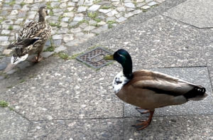 In jedem Newsletter stellen wir, wenn möglich, eine/n Bewohner/in oder Besucher/in unserer Mierendorff-INSEL vor. Diese Woche: Elke Ente und Erwin Erpel, gefiederte Insulaner:innen, gesichtet vor dem Kunst-Fenster.