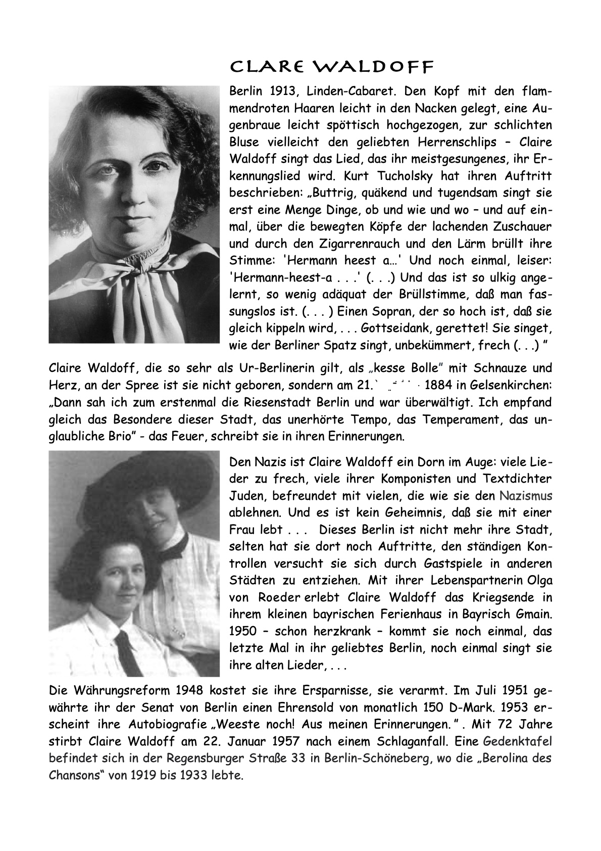 Claire Waldoff im Stadtteilzentrum